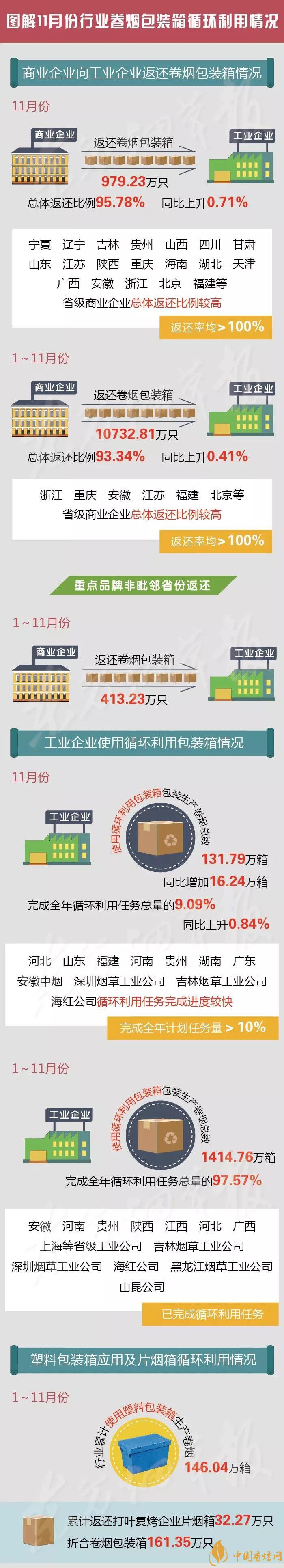 12月19日,國家煙草專賣局通報了11月份行業(yè)卷煙包裝箱循環(huán)利用情況。詳情如何?一圖速覽↓↓↓(圖片來源于東方煙草報)