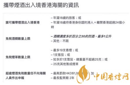 以下是帶煙酒出入境香港的相關(guān)規(guī)定: