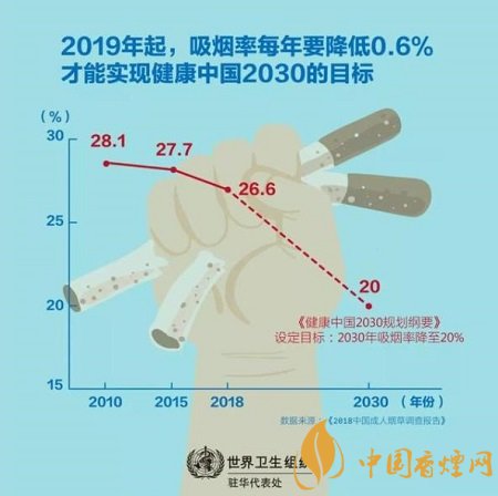 這是中國政府發(fā)布的首個面向人群、以多部門協(xié)作的形式應對非傳染性疾病風險因素的健康戰(zhàn)略?!督】抵袊袆印反_定了國家將重點關注的15個專項行動,以提高全民健康水平、推進實現(xiàn)健康中國目標。煙草控制是第四個專項行動,用以實現(xiàn)到2030年將成人吸煙率降低到20%的目標。這體現(xiàn)了中國對可持續(xù)發(fā)展目標和世界衛(wèi)生組織《煙草控制框架公約》的承諾。然而,中國的煙草控制仍然面臨許多挑戰(zhàn)。2018年中國成人煙草調查顯示,15歲及以上人群的吸煙率仍然很高,達26.6%。