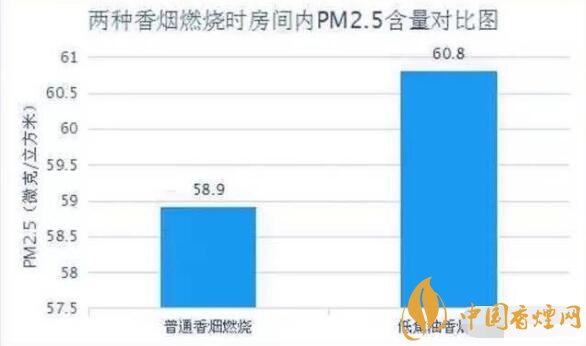 實(shí)驗(yàn)結(jié)果表明細(xì)支煙與粗煙危害對(duì)比,粗桿煙燃燒后,室內(nèi)PM2.5含量為58.9(微克/立方米),細(xì)桿煙燃燒后,室內(nèi)PM2.5含量為60.8(微克/立方米),均比點(diǎn)燃香煙之前有明顯提升。而且,細(xì)桿煙所釋放的煙草煙霧濃度,略高于粗桿香煙。也就是說,號(hào)稱“低焦油香煙”的細(xì)桿煙,燃燒后所釋放的有害物質(zhì)不低于粗桿香煙,甚至有些數(shù)據(jù)還會(huì)略高一些。#p#副標(biāo)題#e#