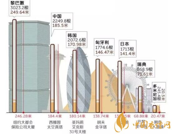 黎巴嫩的人均吸煙數(shù)為3023.15根,堆起來的高度有246.28米,相當(dāng)于位于紐約曼哈頓中城中央車站上方的大都會(huì)保險(xiǎn)公司大廈。給大家個(gè)圖片感受一下!#p#副標(biāo)題#e#