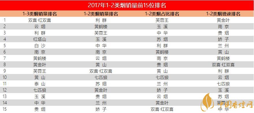 如果用一二類煙來排名雙15品牌 無疑更具參考性和說服力