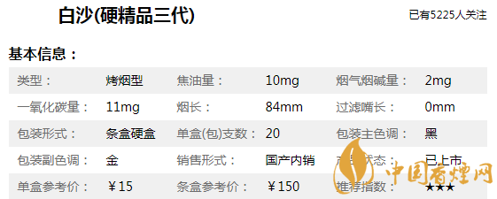 2、白沙(精品三代)價格優(yōu)勢