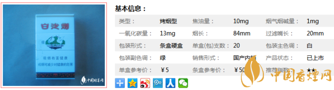 白沙硬多少錢一包 白沙硬香煙價格及參數(shù)