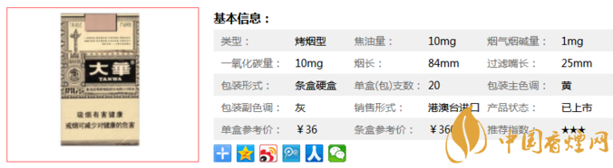 三、大華開(kāi)元香煙參數(shù)