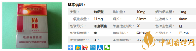 以前的光明,有好多年沒(méi)有見(jiàn)過(guò),但是2015又上市了??吹搅诵聼熅唾I(mǎi)了一包,怎么說(shuō)呢,味道和普通的黃山感覺(jué)還是差不多的,煙標(biāo)整體有點(diǎn)像朝鮮的煙,還不錯(cuò),性價(jià)比高。經(jīng)香煙網(wǎng)小編市場(chǎng)調(diào)查黃山金光明售價(jià)為7元/包。