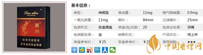 | 類型 :烤煙型 | 焦油量 :11mg | 煙氣煙堿量 :0.9mg | 一氧化碳量 :11mg |