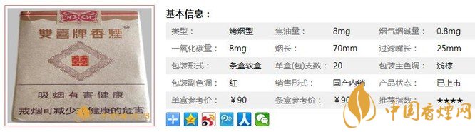 三、雙喜珍藏香煙參數(shù)