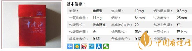 以上便是由香煙網(wǎng)小編為大家介紹的關(guān)于中南海祥和132價(jià)格表一覽 中南海系列難得的一款烤煙的相關(guān)信息,想要了解更多有關(guān)內(nèi)容請(qǐng)點(diǎn)擊:中南海軟精品流水音多少錢(qián)一包 中南海軟精品流水音價(jià)格大全