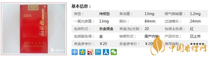 江蘇四大名煙之一紅杉樹軟五星價格及參數(shù)分析