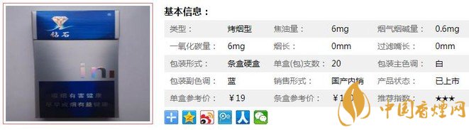 三、鉆石扁藍(lán)時尚香煙參數(shù)