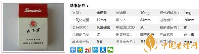 三、天下秀紅天地香煙參數(shù)