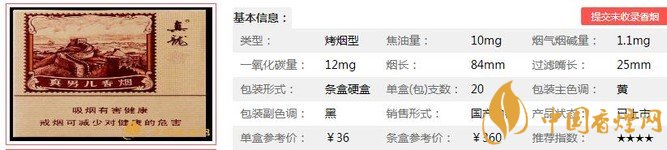 三、真龍真男兒寬版香煙參數(shù)