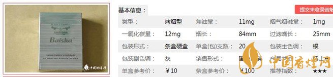 類型 :烤煙型 焦油量 :11mg 煙氣煙堿量 :1mg 一氧化碳量 :12mg