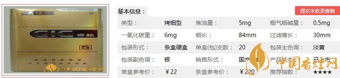 類型 :烤煙型 焦油量 :5mg 煙氣煙堿量 :0.5mg 一氧化碳量 :6mg