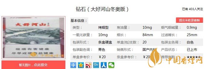 一、鉆石大好河山冬奧版香煙價格