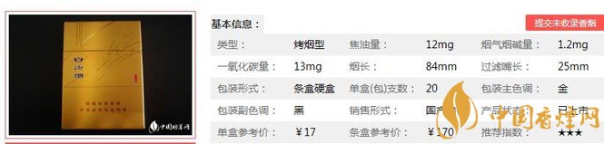 | 類(lèi)型 :烤煙型 | 焦油量 :8mg | 煙氣煙堿量 :0.9mg | 一氧化碳量 :10mg |