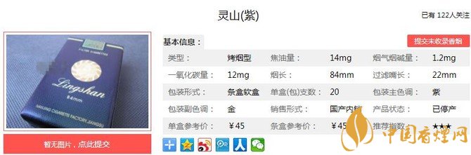 江蘇系的卷煙無論貴賤基本一濃香著稱,靈山的香煙精選各國好煙葉,并搭配精心調(diào)配的特別蓮香,聞起來煙香特別,香氣濃郁飽滿,頗有有靜心安神和定氣之效,至于是不是蓮香就見仁見智了,下面就由香煙網(wǎng)小編帶大家一起來了解靈山紫的相關信息。