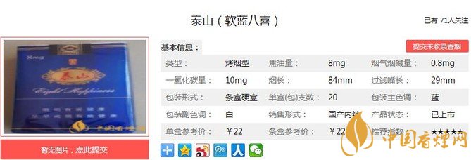 一、泰山軟藍八喜香煙價格