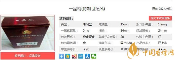一、一品梅世紀(jì)風(fēng)香煙價格