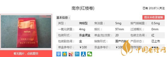 南京(紅樓卷)是“南京”品牌“紅學(xué)文化系列”高端引領(lǐng)規(guī)格。其最重要的作用體現(xiàn)在填補(bǔ)了蘇產(chǎn)細(xì)支煙“紅學(xué)文化系列”高端空白。由此,江蘇中煙的產(chǎn)品布局尤其是細(xì)支煙品類進(jìn)一步清晰,從而進(jìn)一步提升了蘇產(chǎn)卷煙品牌的價(jià)值和內(nèi)涵.下面就由香煙網(wǎng)小編帶大家一起來(lái)了解南京紅樓卷的相關(guān)信息。