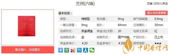 以上便是由香煙網(wǎng)小編為大家介紹的關于蘭州六味售價20元一包 慶祝神七飛天紀念版的相關信息,想要了解更多有關內容請點擊:嬌子紅新概念價格及參數(shù) 首次采用“微笑香線”設計