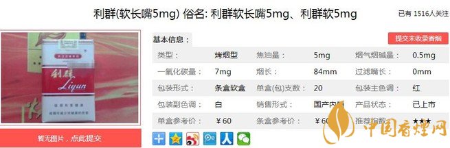 一、利群軟長(zhǎng)嘴5mg香煙價(jià)格