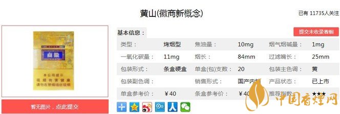 一、黃山徽商新概念香煙價格