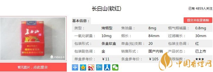 一、長(zhǎng)白山軟紅香煙價(jià)格