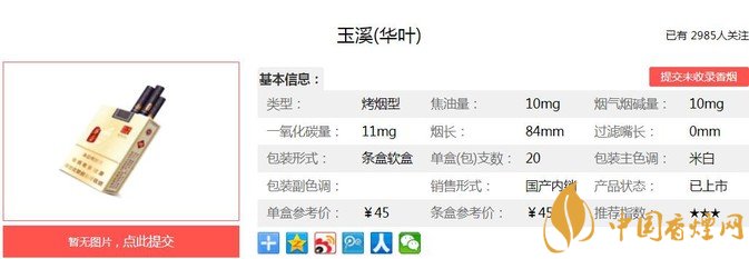 一、玉溪華葉香煙價格