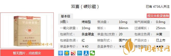以上便是由香煙網(wǎng)小編為大家介紹的關(guān)于雙喜硬珍藏香煙價格 雙喜硬珍藏?zé)煵菰阃怀龅南嚓P(guān)信息,想要了解更多有關(guān)內(nèi)容請點擊:金圣滕王閣紫光好抽嗎 金圣滕王閣紫光價格及口感分析