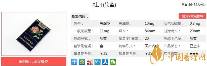 清新包裝優(yōu)雅煙香牡丹軟藍(lán)的價(jià)格35元一包!