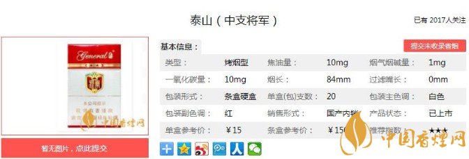 泰山香煙多少錢一包 泰山中支將軍價(jià)格及口感分析