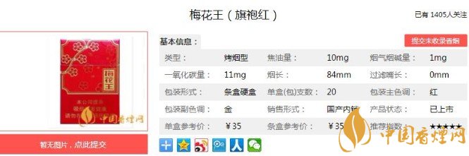 以上便是香煙網(wǎng)小編為大家介紹的關(guān)于梅花王旗袍紅多少錢一包 梅花王旗袍紅價(jià)格及口感分析的相關(guān)信息,看完之后大家是不是對(duì)于梅花王(旗袍紅)這款香煙的相關(guān)信息更加了解呢。大家還想查詢更多的相關(guān)內(nèi)容歡迎點(diǎn)擊:梅花王硬紅多少錢一包 梅花王硬紅參數(shù)及口感(內(nèi)附圖片)