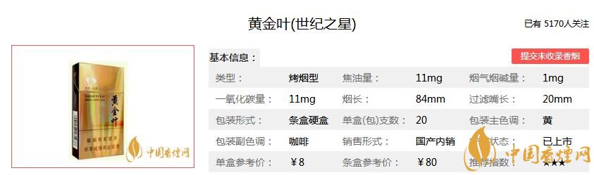 以上就是香煙網(wǎng)小編為大家整理介紹的黃金葉世紀之星香煙的價格表圖一覽,希望為煙民們?nèi)蘸筮x擇提供幫助。想了解更多香煙知識,請關注香煙網(wǎng)!