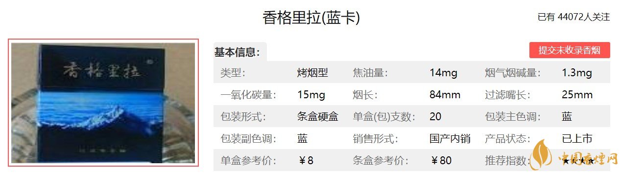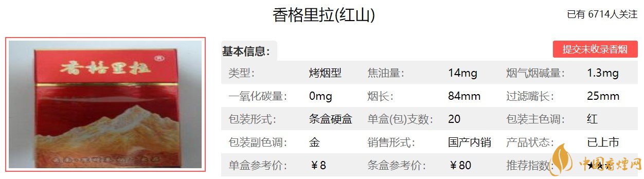 香格里拉香煙價格表圖