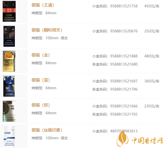 2020年御貓香煙價(jià)格圖片大全
