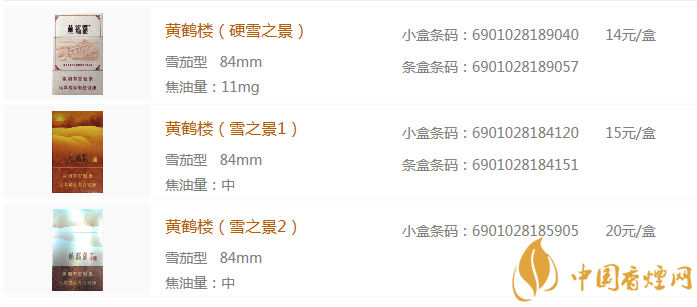 黃鶴樓雪之景全部型號香煙圖片及價格介紹