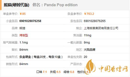 熊貓(硬時代版)煙(俗稱:Panda Pop edition)是上海煙草集團有限責(zé)任公司旗下品牌熊貓香煙推出的一款焦油含量11mg的烤煙型香煙。下面小編就為大家講解一下這款香煙的價格以及參數(shù)。