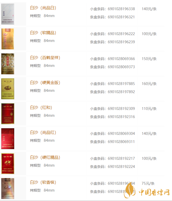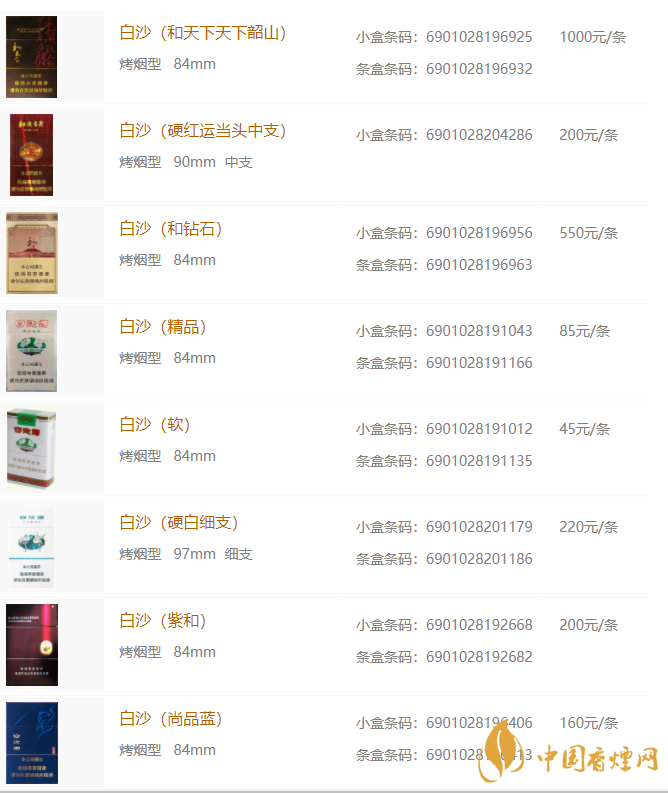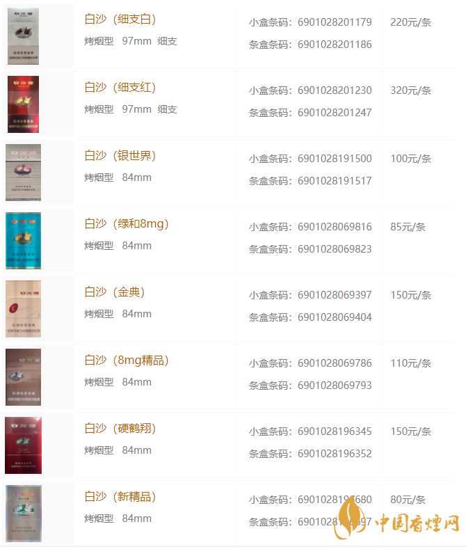 白沙香煙價(jià)格表和圖片
