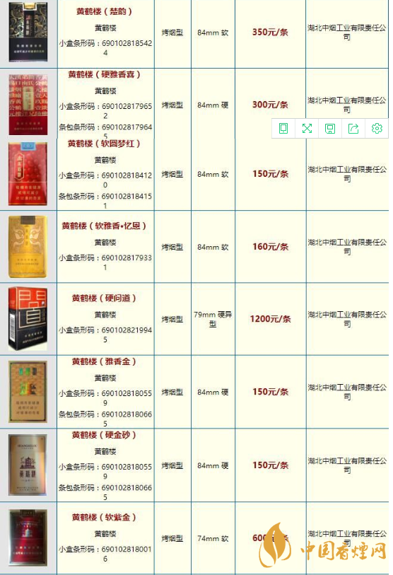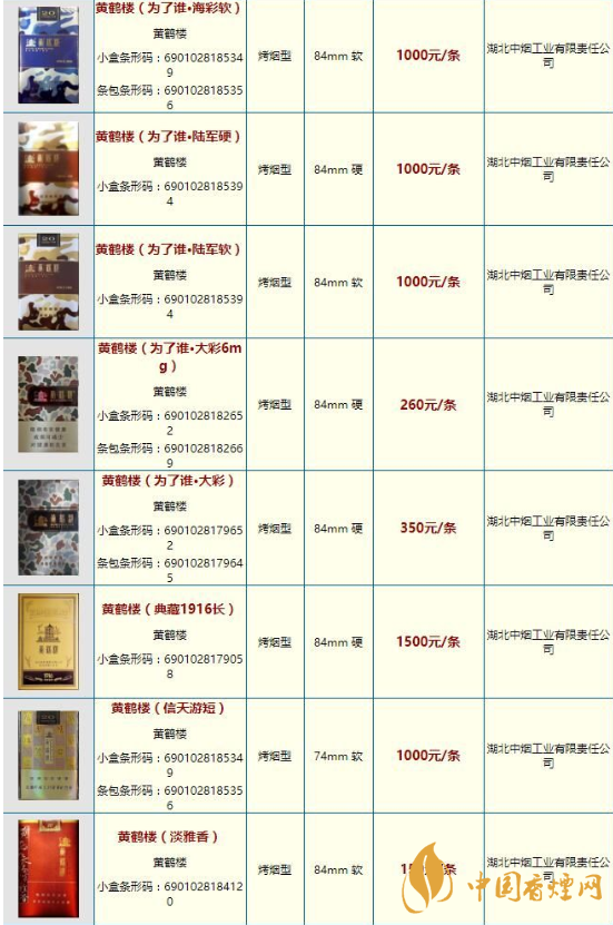 2025最新黃鶴樓香煙價(jià)格表及圖片一覽