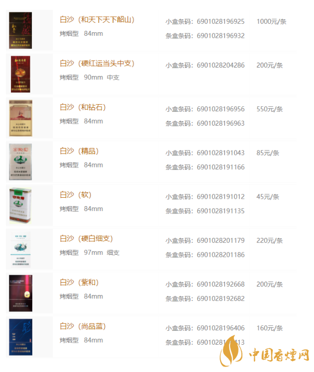 2020年白沙香煙最新價(jià)格表和圖片大全