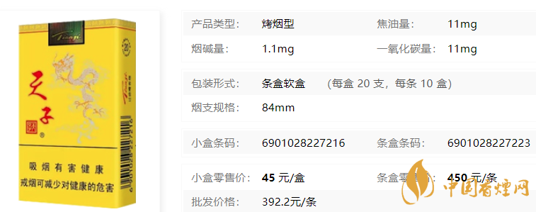 2020天子(軟黃)香煙多少錢一包 最新天子(軟黃)香煙價格表圖