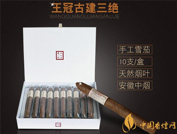 王冠雪茄出產(chǎn)自安徽,它們旗下的產(chǎn)品十分的豐富,其中一款雪茄名為王冠古建三絕,這款雪茄的名命突出了安徽特色,當(dāng)?shù)匾造籼谩⑴品?、民宅最具特色,?hào)稱古建三絕。這款雪茄煙上市以后反響很不錯(cuò)。那么這款王冠古建三絕雪茄多少錢?香煙網(wǎng)小編為大家介紹一下這款王冠雪茄價(jià)格表圖。