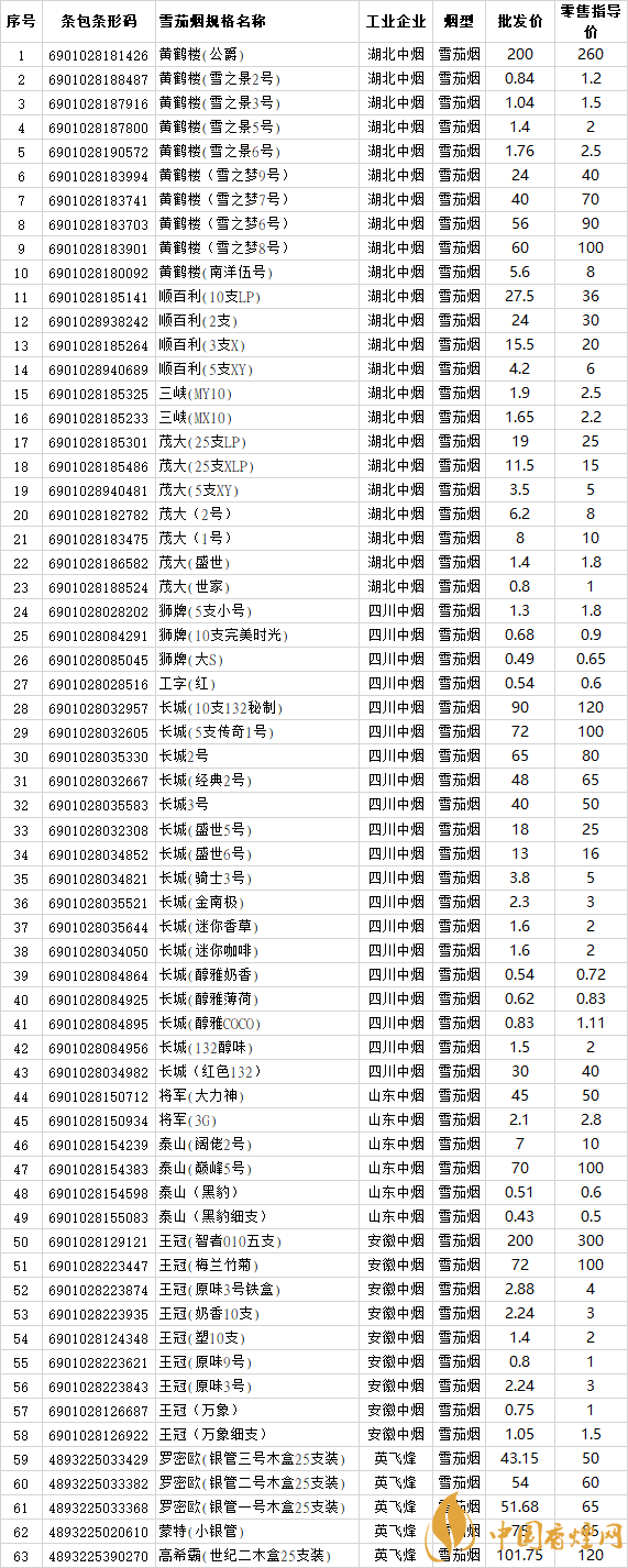 最新國(guó)產(chǎn)雪茄煙價(jià)格表圖 2025年湖北省雪茄煙價(jià)格(上半年)