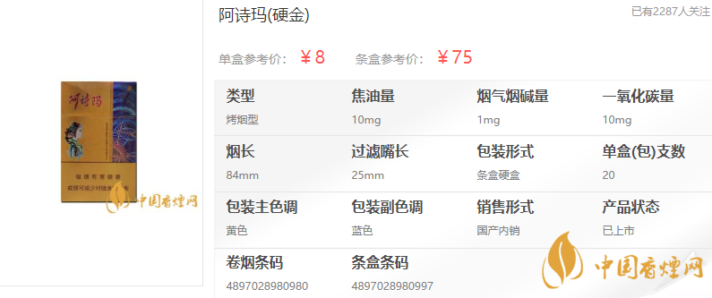 【阿詩瑪硬金多少錢一盒 阿詩瑪香煙硬盒價(jià)格表】相關(guān)推薦文章: