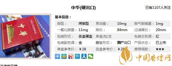 煙界的中華,有如白酒界的茅臺,其歷史積淀和人文底蘊(yùn)極其豐厚。中華香煙執(zhí)中國煙草之牛耳數(shù)載。數(shù)十年前,60元的軟中和40元的硬中,價格遠(yuǎn)遠(yuǎn)高于其它各省的煙草品牌,令眾煙望塵莫及,我們知道了庫克中華是什么煙后,出口版的中華的價格也會比內(nèi)銷版的價格低,那么這款庫克中華的零售參考價為28元/包。