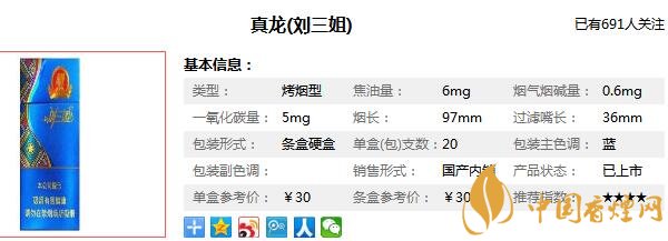 劉三姐香煙多少錢一包 真龍劉三姐細(xì)支煙價(jià)格30元/包
