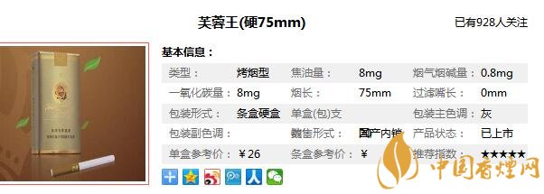 芙蓉王香煙于1994年誕生,參與中國高檔卷煙市場競爭,意在搶奪20元檔以上這一當(dāng)時的價位市場空白點,然而芙蓉王香煙做的非常成功,它的風(fēng)格深受廣大卷煙消費者喜愛,更因其內(nèi)在品質(zhì)被譽為“中式卷煙的典范代表”。在對新出短支黃芙蓉王售價進行分析之前,先來看看這款芙蓉王短支多少錢一包,這款香煙叫做芙蓉王(硬75mm)售價為26元/包。