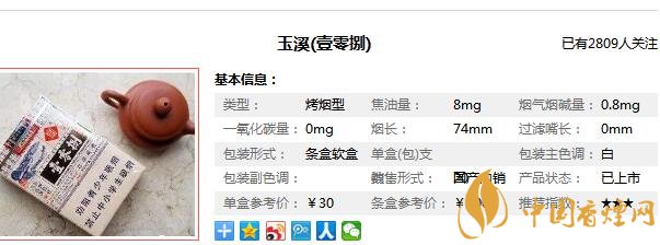 類型 :烤煙型 焦油量 :8mg 煙氣煙堿量 :0.8mg 一氧化碳量 :12mg